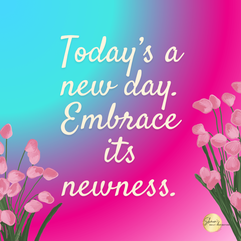 Today’s A New Day! Embrace Its Newness and Allow it to surround you. New Mindset. New You!