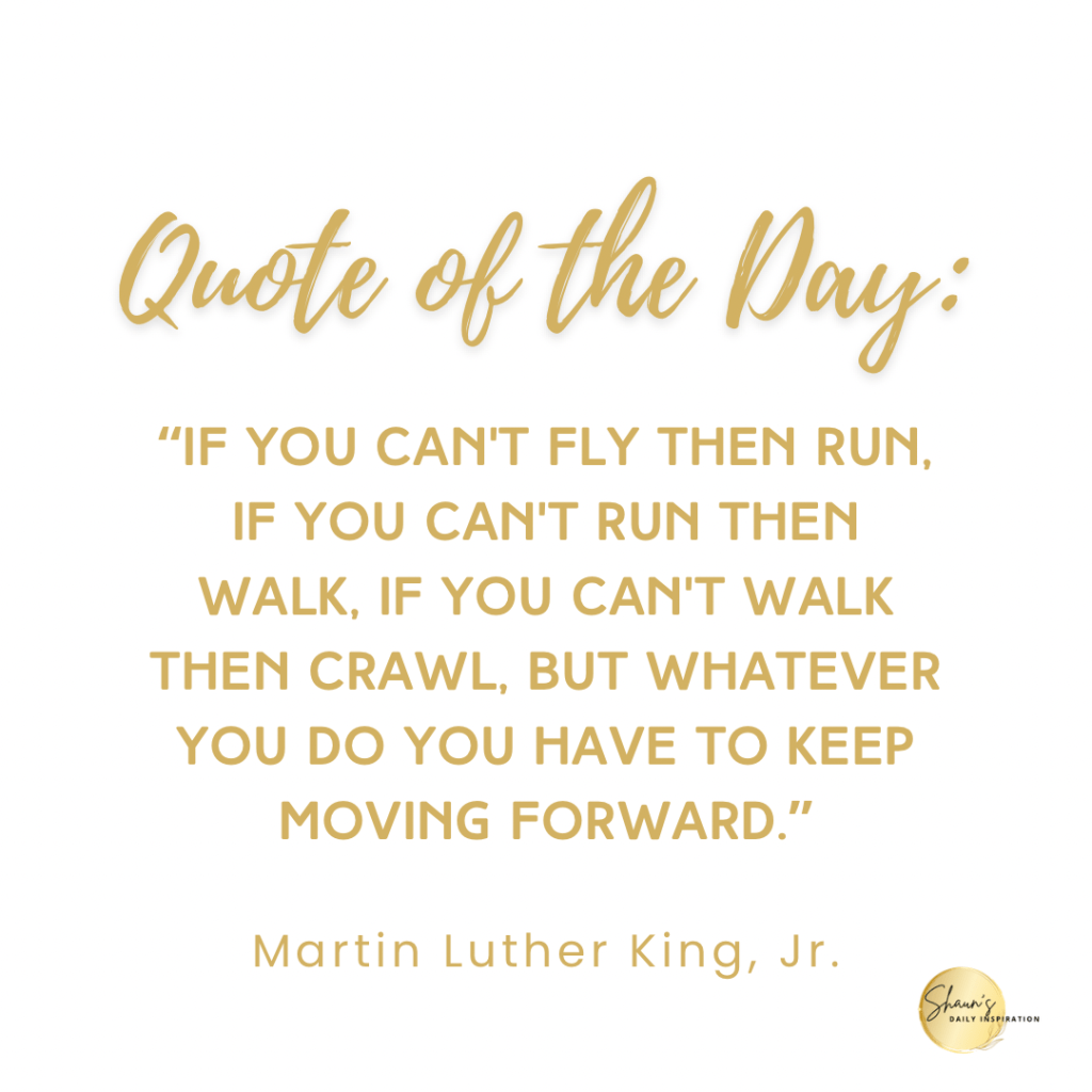 “If you can’t fly then run, if you can’t run then walk, if you can’t walk then crawl, but whatever you do you have to keep moving forward.” –Martin Luther King, Jr.